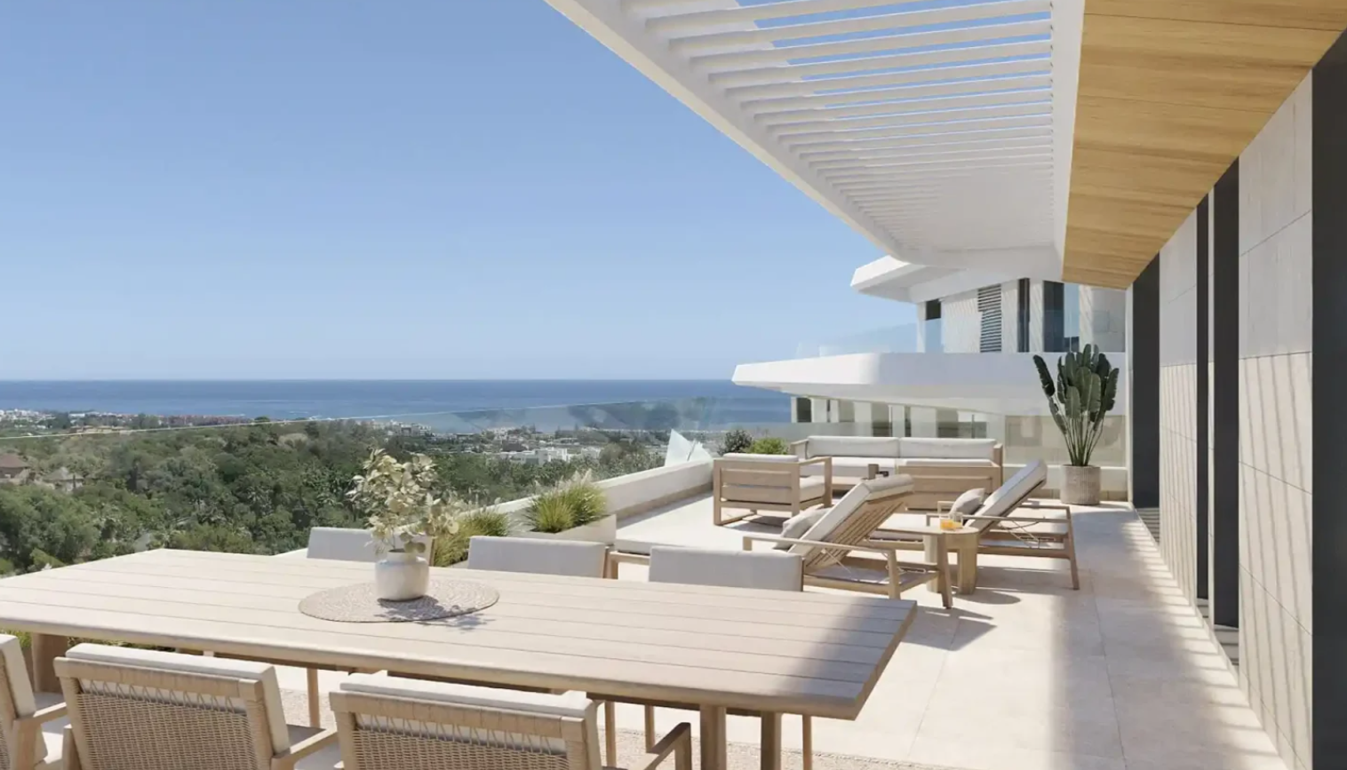 The views take in the mountain ranges that help create the unique climate of the Costa del Sol. The main focus, however, is in a southerly direction, to the coastline that stretches out towards the unmistakable outlines of Gibraltar and North Africa.