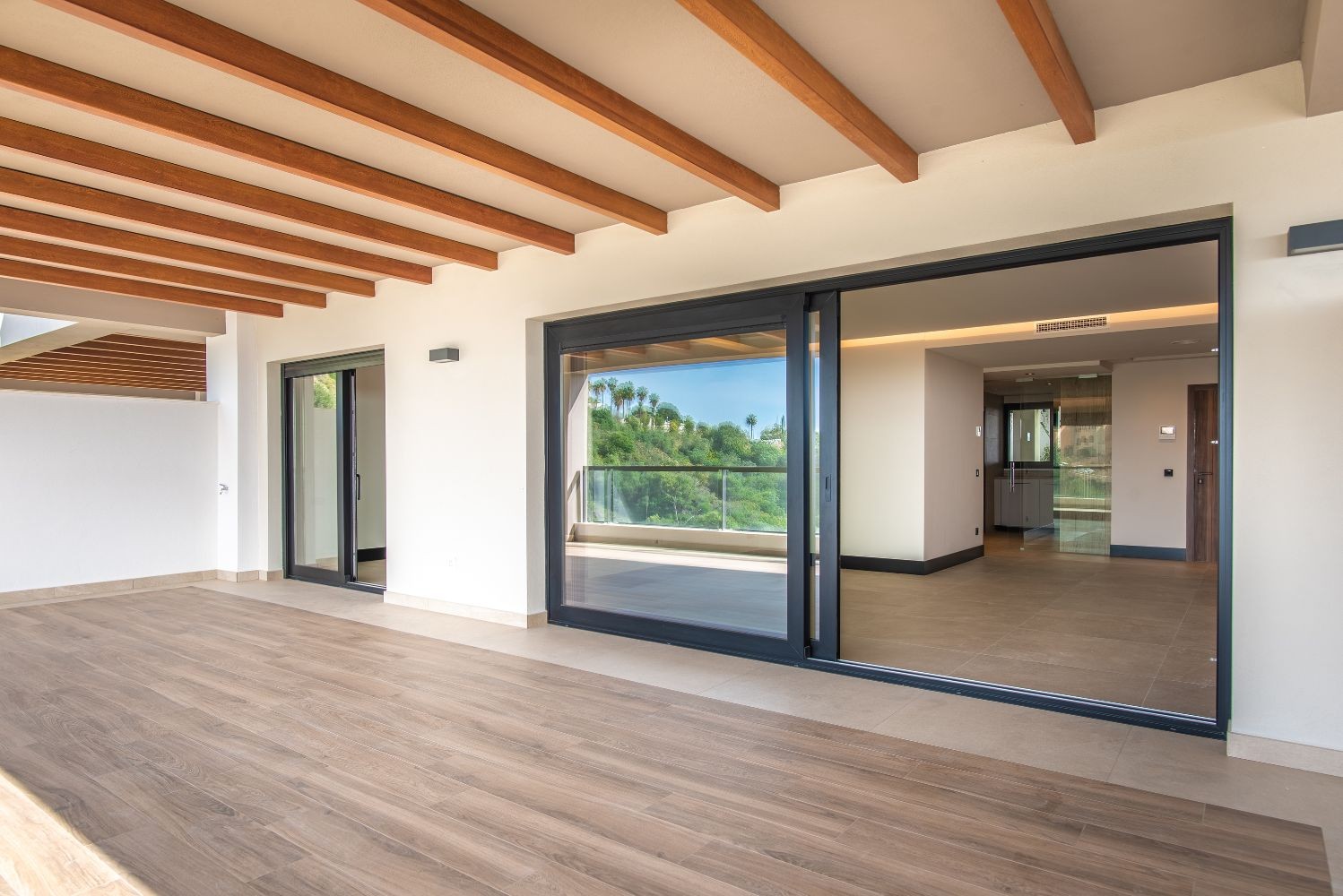 As you enter, you're greeted by sleek, modern finishes that exude sophistication and style. The spacious living area boasts floor-to-ceiling windows, allowing natural light to flood the space while offering breathtaking views of the shimmering sea. Step outside onto your expansive terrace, an inviting extension of your living space where you can take in the panoramic vistas.