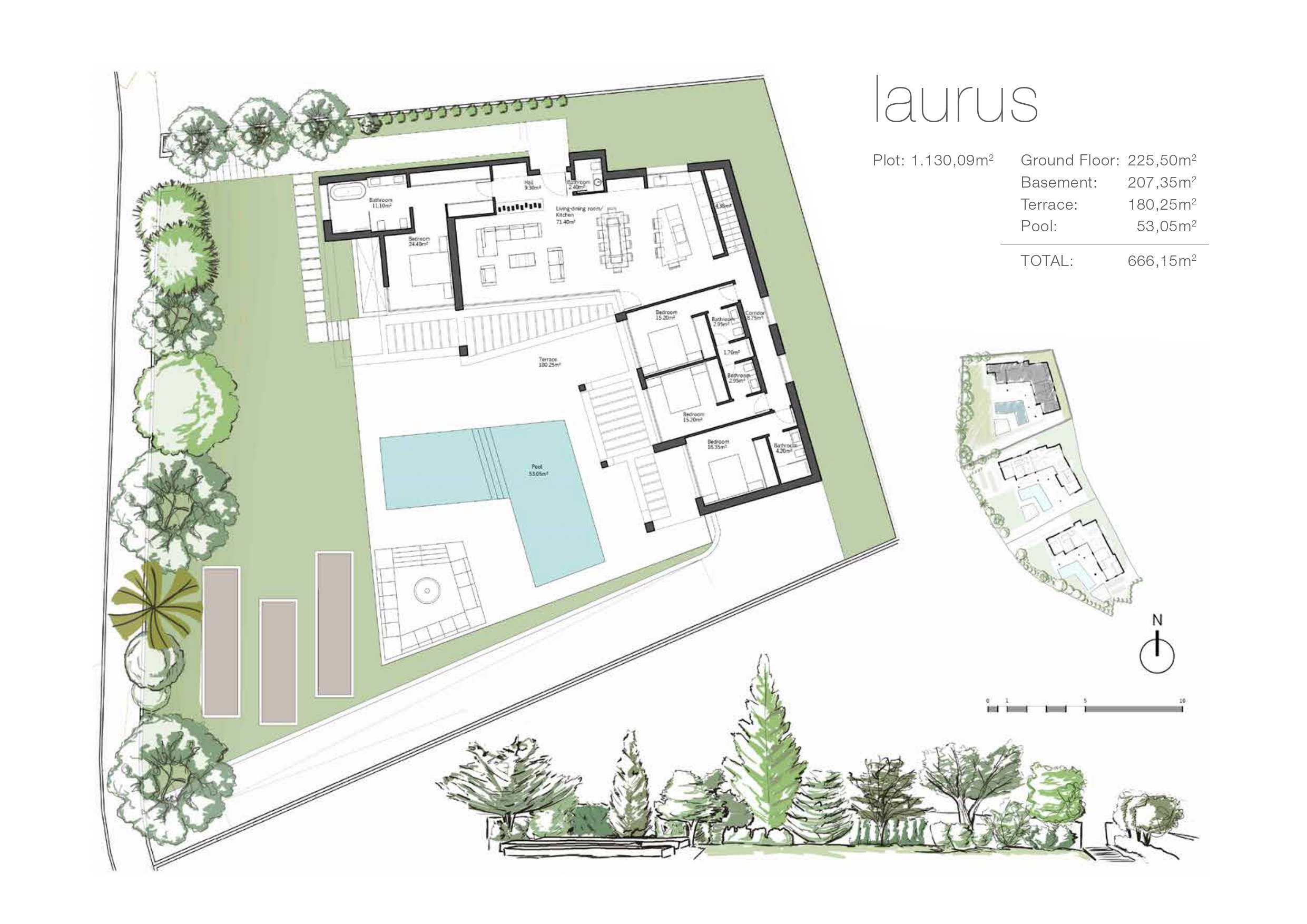 The villas have been carefully studied, with a special architectural design where each house has been projected on one floor, and also has its own landscaping and ecological garden to enjoy the freshness of nature. The buyer of Villa Casia will be able to cook using their own ingredients and food, inspiring the aroma of the aromatic species that will characterize their home (Laurel, Thyme or Lavender) and making the most of the comfort of their home that has large terraces, garden areas, pool and chill out area with winter fire. The villas have an underground garage and a large basement that can be customized to the taste and lifestyle of each family.