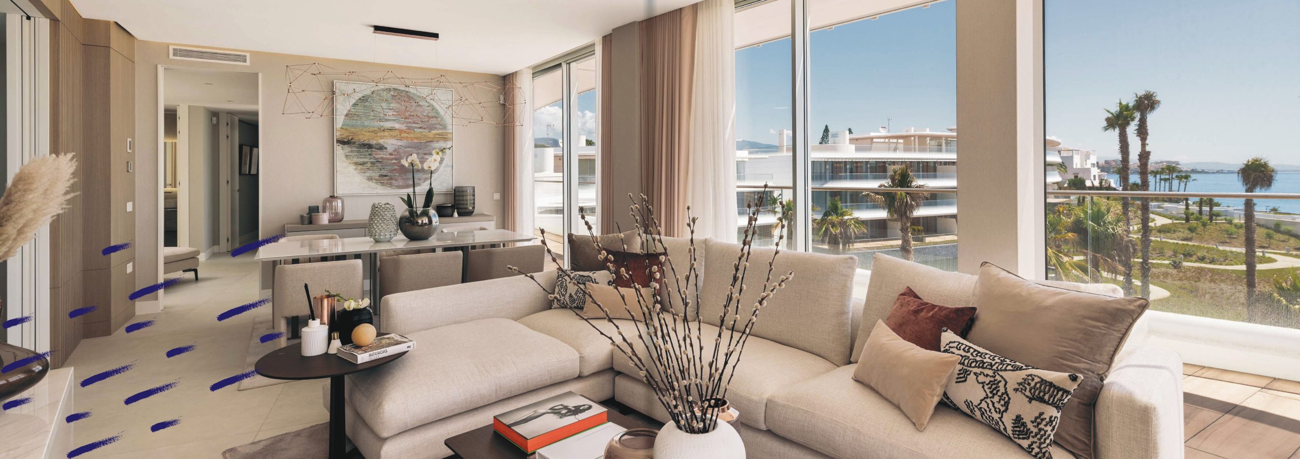 Large landscaped areas, large swimming pools and landscaped design. In addition, a welness center and gym where you can take care of your body and your mind. Magnificent views of sunrise and sunset, all year round from the terraces of the houses.